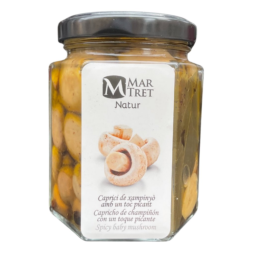 Žampiony v pikantním nálevu od rodinné španělské firmy Mar-Tret přinášejí vyváženou kombinaci jemné chuti čerstvých žampionů a příjemné ostrosti.