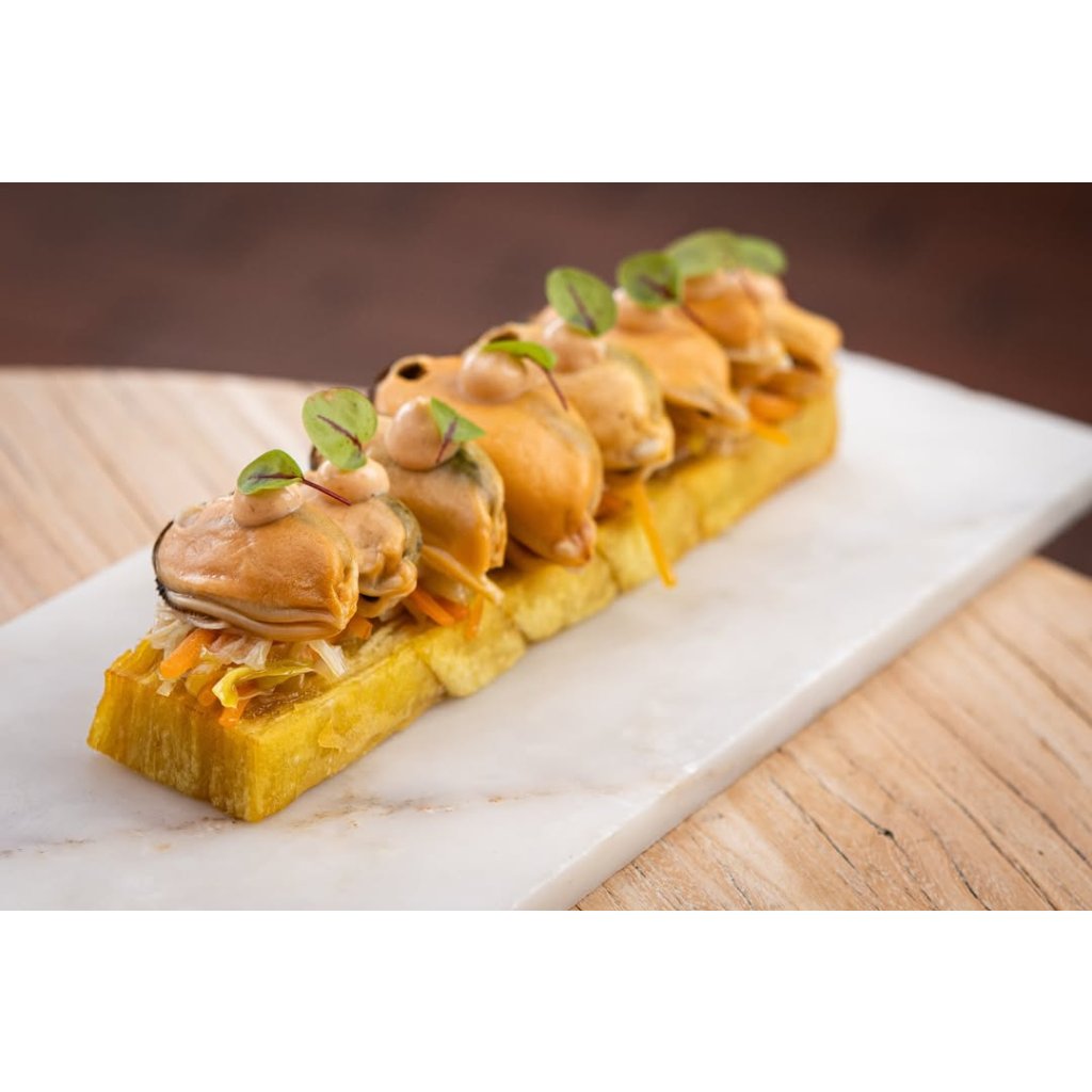 Mušle Real Conservera pocházejí z ústí řeky Arosa, díky čemuž mají svou typickou oranžovou barvu, kterou podtrhuje slavná omáčka escabeche, jejíž základ tvoří paprika, černý pepř, hřebíček a bobkový list. Slávky se velmi pečlivě vybírají a ručně očišťují, následně jsou krátce osmaženy v olivovém oleji a polévají se marinádou.